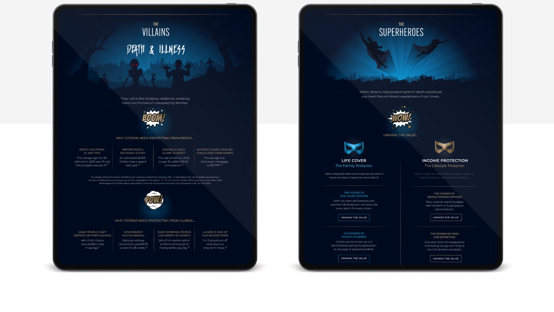 Using a comic book visual language, death and illness played the role of the villains and life cover and income protection became the superheroes.