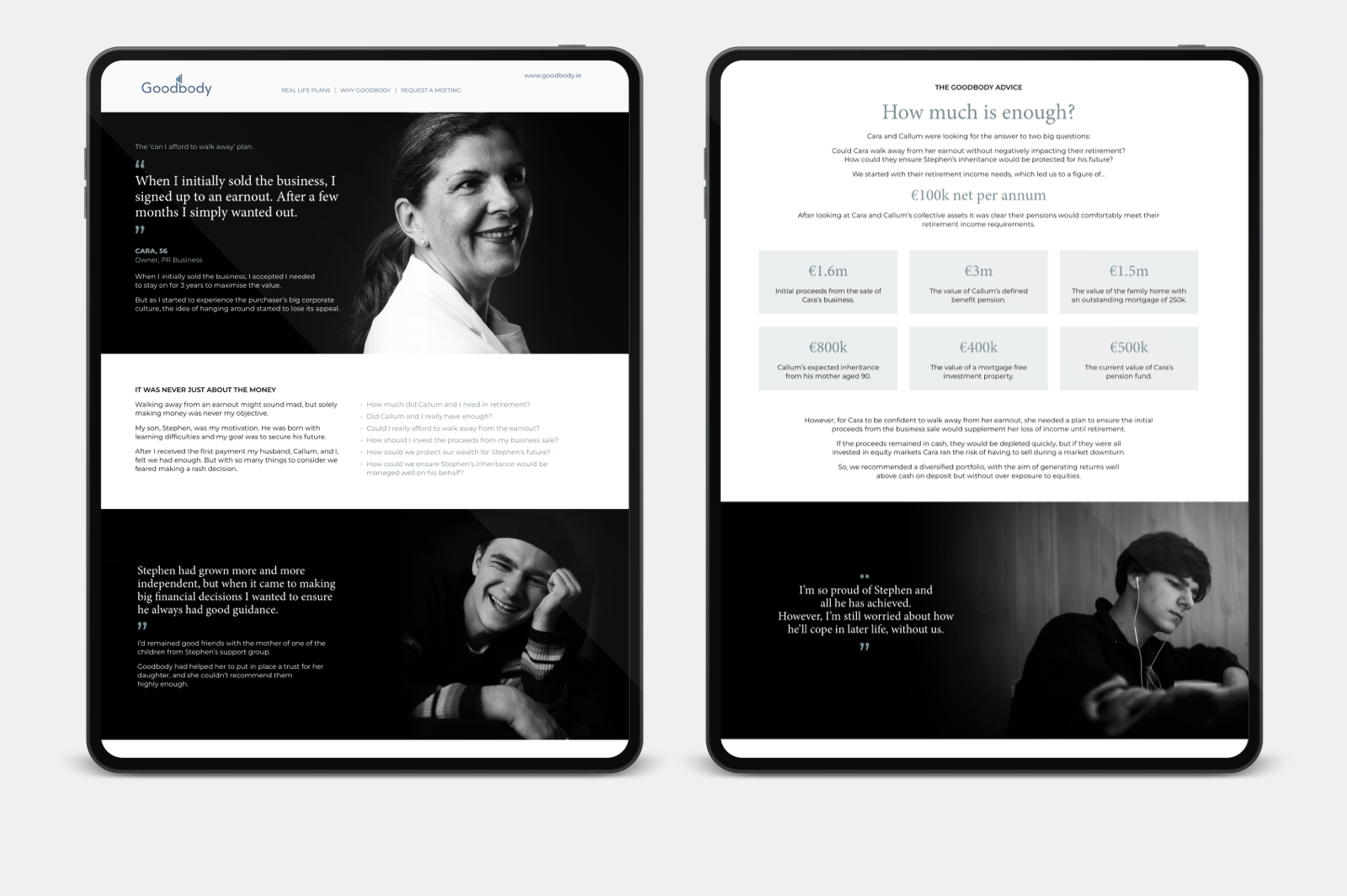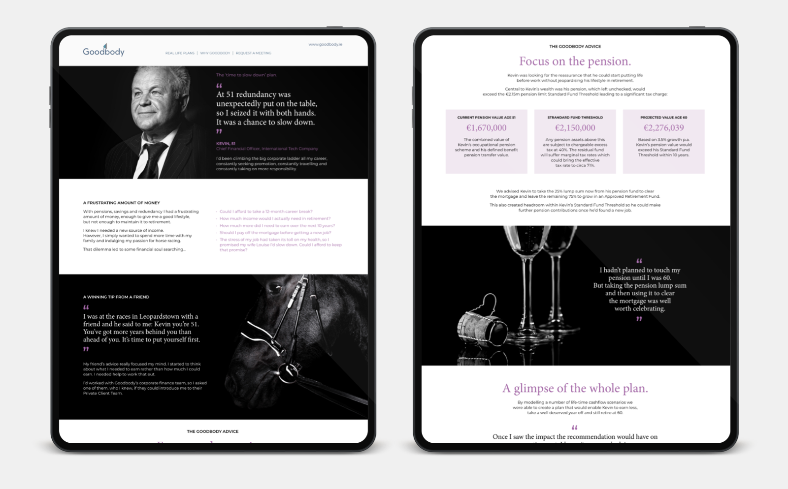 So, when Goodbody, Ireland’s famous wealth manager, asked us if we could help them communicate their services in a more customer-centric way, we jumped at the chance.
