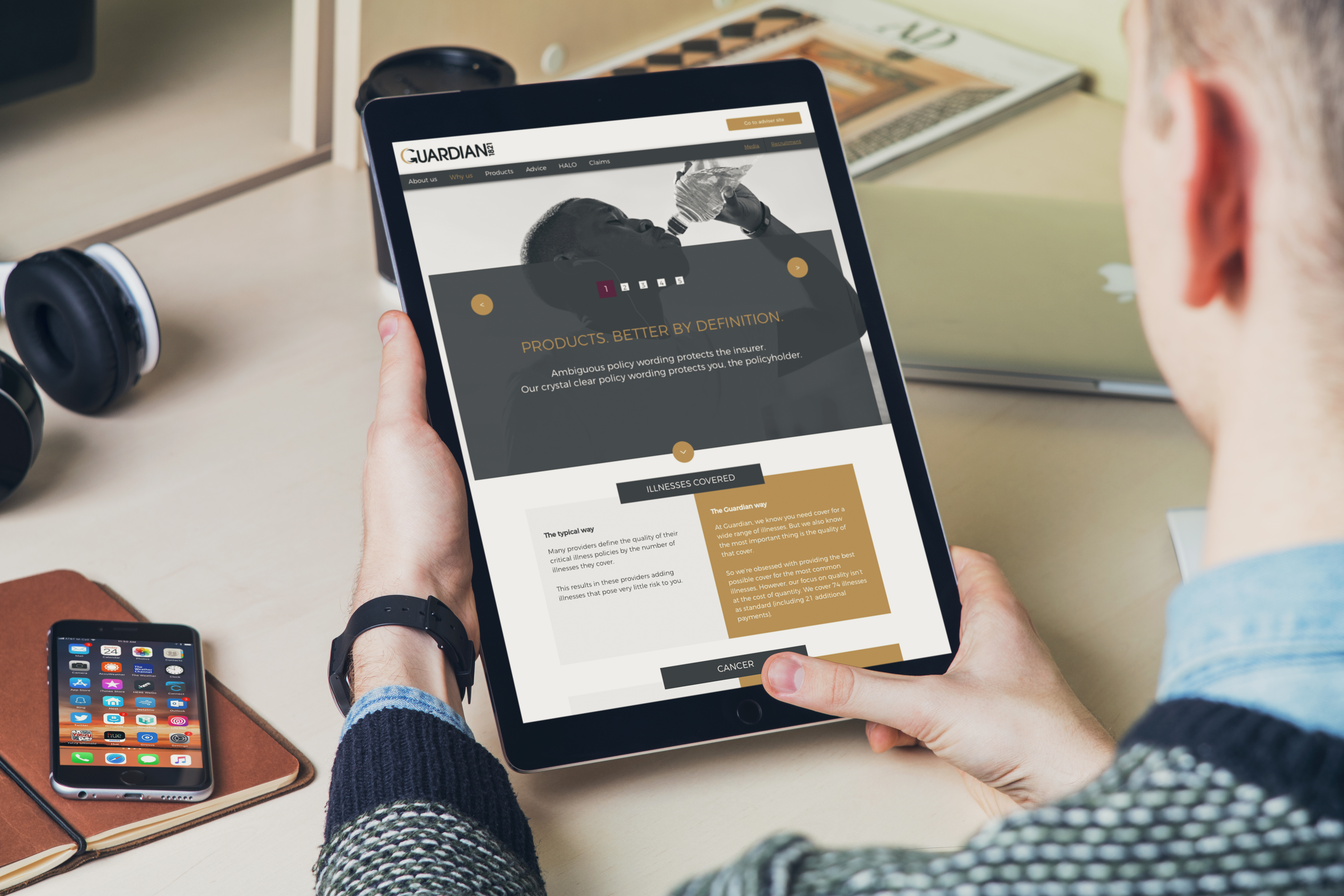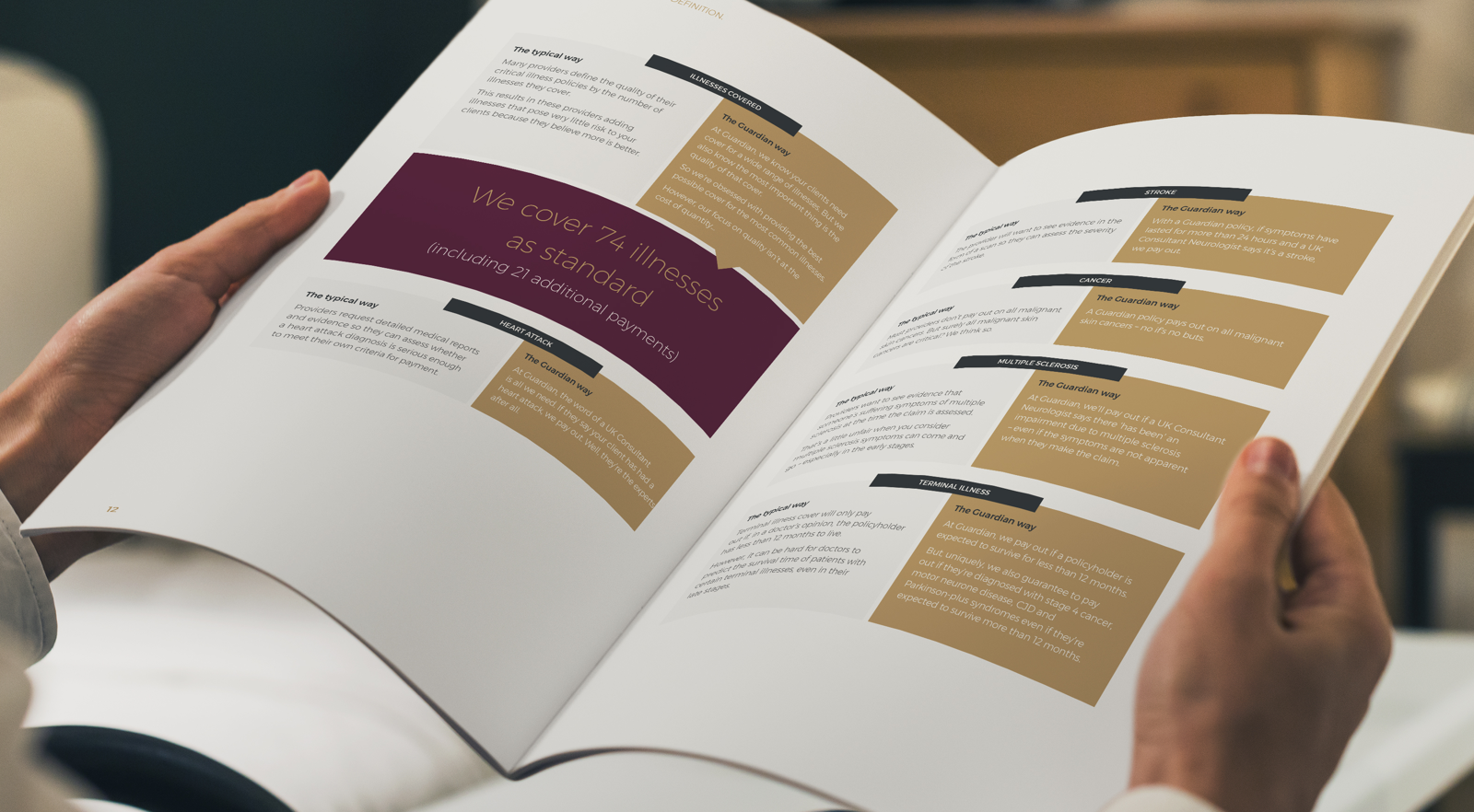 Black and white photography lets the brand project quality, while the messaging strategy amplifies every point of difference by comparing the ‘Typical Way’ insurers do business with the ‘Guardian Way’ of doing business.