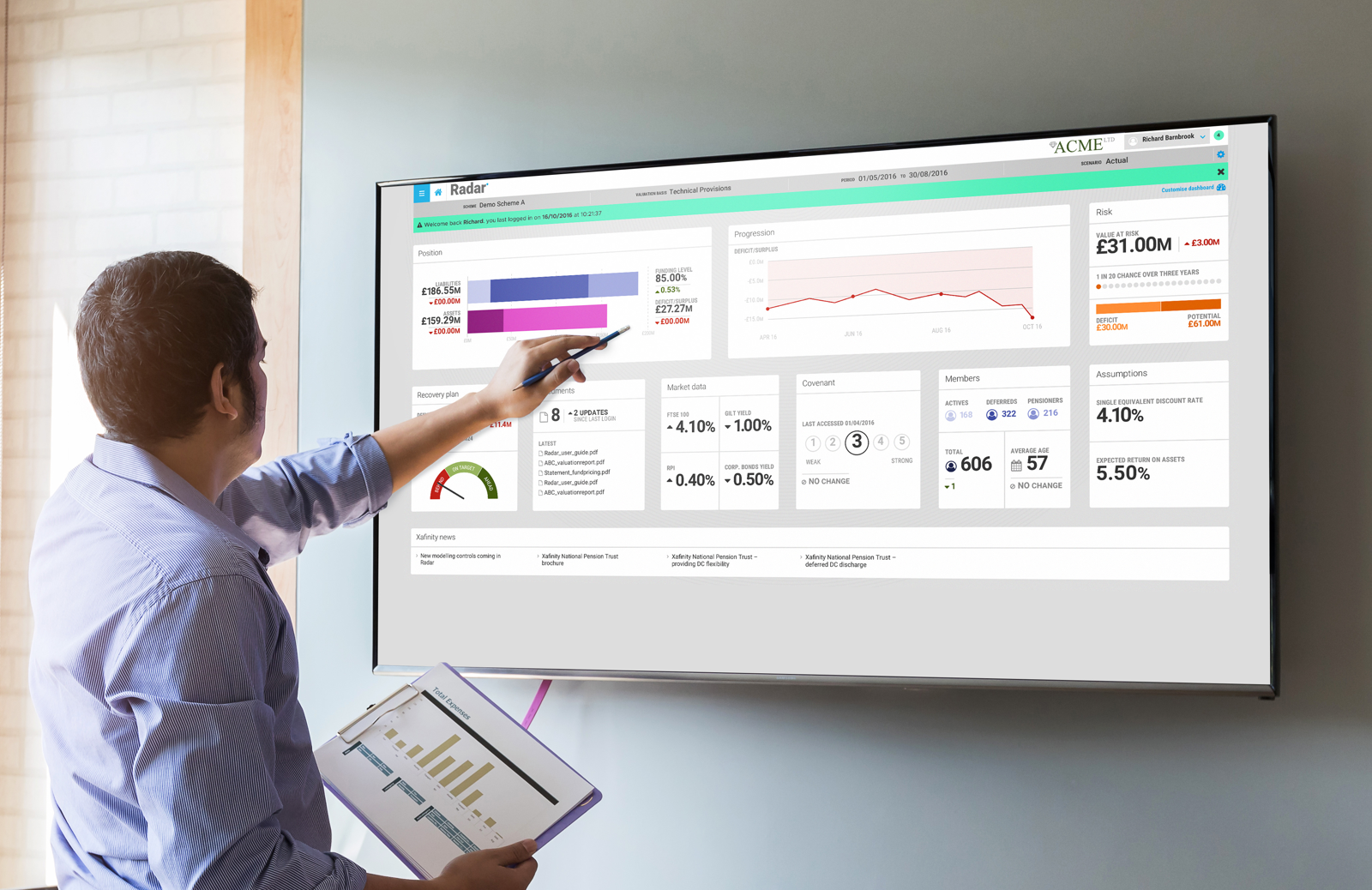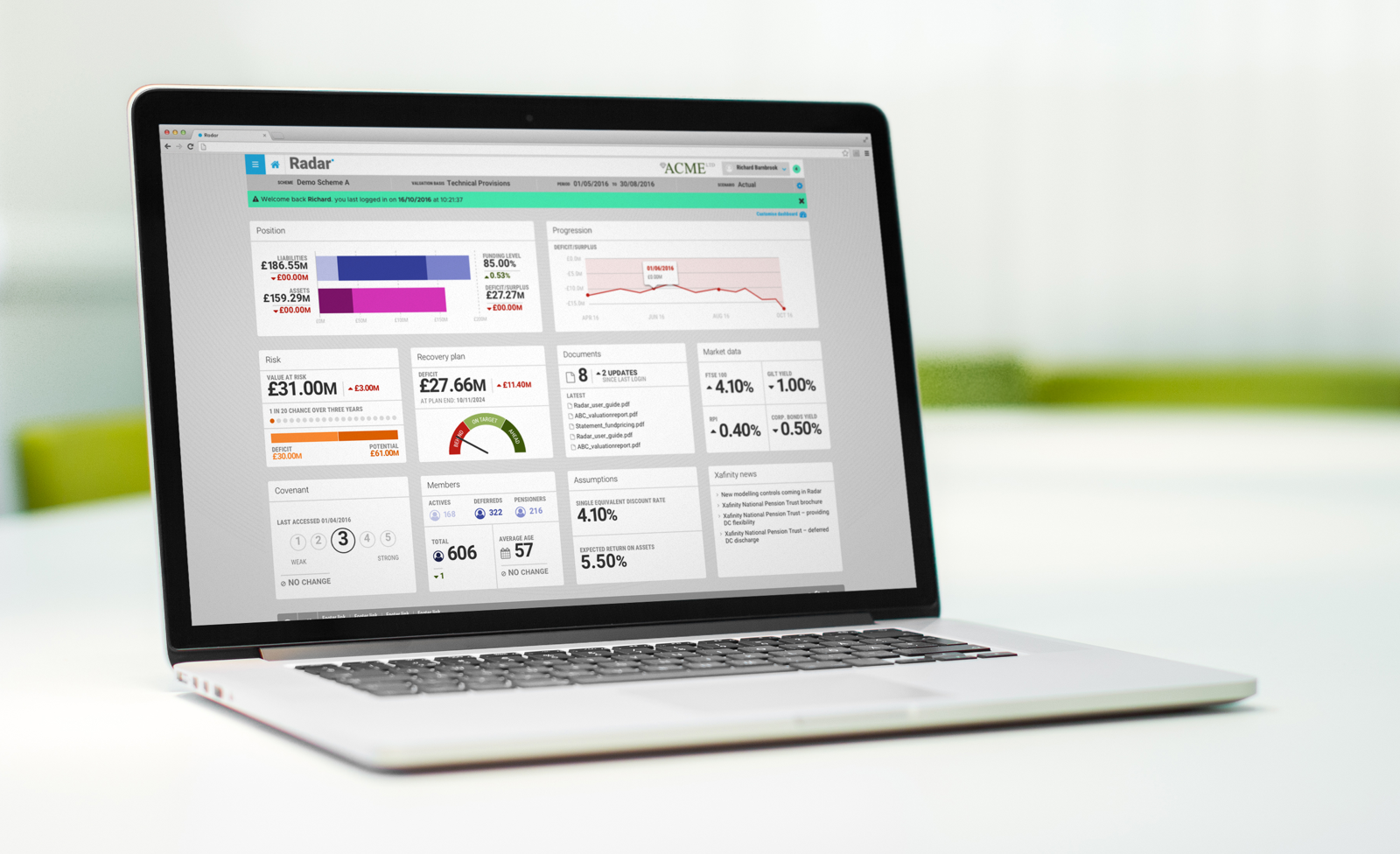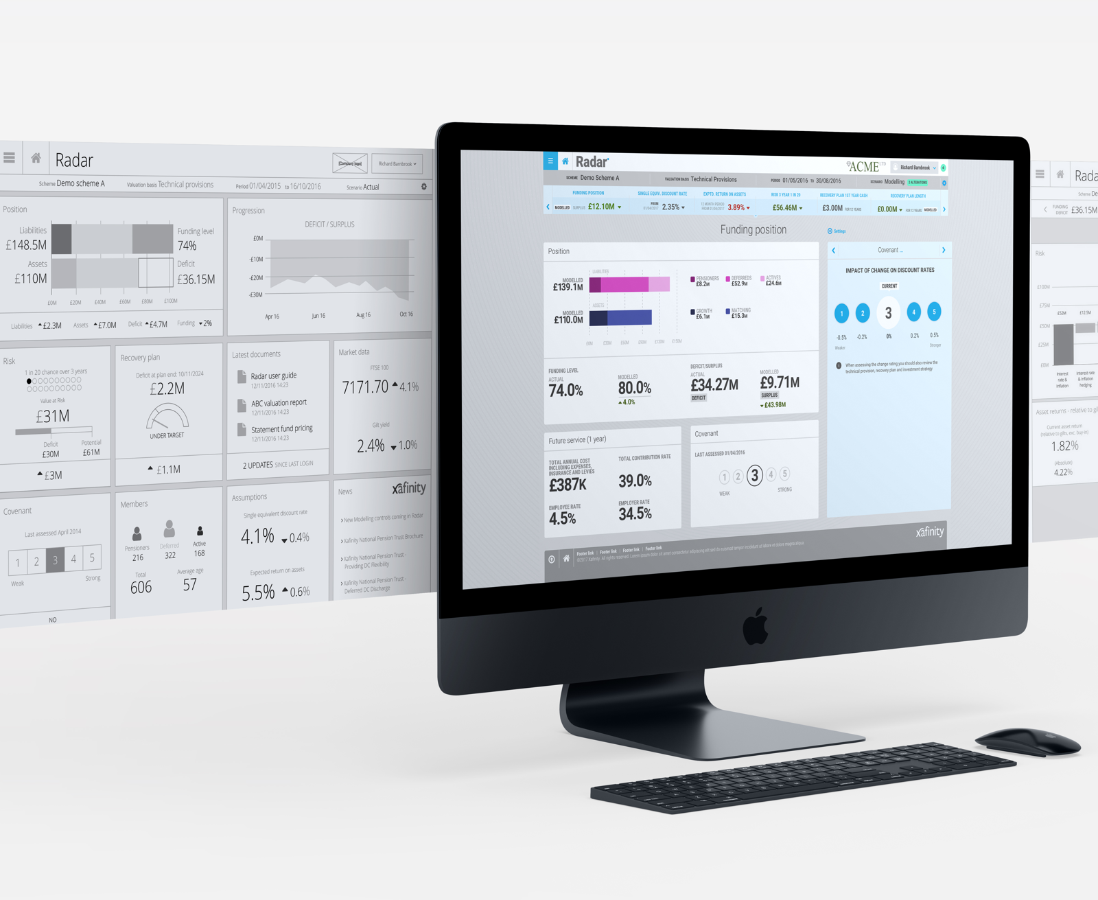 We designed and built an innovative calculation engine and modelling tool – Radar – with rich visualisations, showing the current position of pension scheme assets and liabilities. All in real time. And, recognising that not all users are the same, we created a smart dashboard to give individuals all the information they needed, in the format they wanted.
